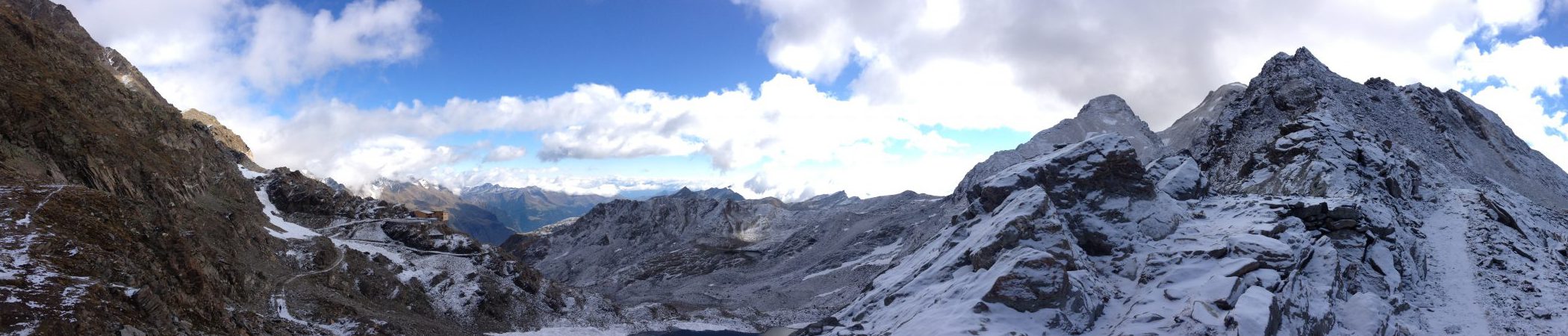 Am morgen des vierten Tages begrüßt uns dichter Nebel. Als wir starten wissen wir also noch nicht, dass oben sogar eine Schneeballschlacht möglich sein wird. Auf acht Kilometern überwinden wir fast 900 Höhenmeter. Der Weg ist gut präpariert und wir erreichen das Eisjöchl auf 2.895 m bei klarem Himmel. Ein Rundblick wie aus dem Bilderbuch. In der Stettiner Hütte wärmen wir uns mit heißer Suppe, bevor es stoisch abwärts geht über Geröll und Trampelpfade. Das schlaucht. Zugegeben. Dass es auf dem gesamte Weg heute nur diese eine Jausenstation gibt, fällt uns erst gar nicht auf. Wir sehen uns wohl an der überwältigenden Landschaft satt. Das Doppelzimmer im Gasthof-Zeppichl ist dann der ideale Abschluss für diesen anspruchsvollen Wandertag. Müde fallen wir in die Betten.