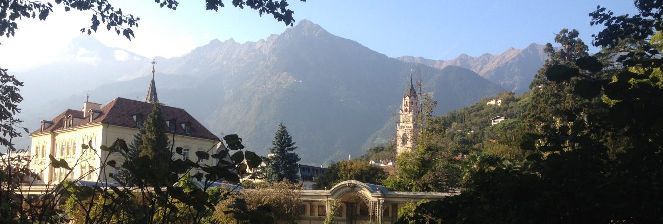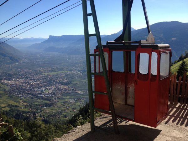 Wir sind mit dem Zug nach Meran gereist und haben erstmal in einer kleinen Pension eingecheckt. Früh am nächsten Morgen nehmen wir den Bus, hoch nach Dorf Tirol und steigen dort in die Gondel zur Bergstation Hochmuth auf 1.361 m. Wir sind oben und bleiben es auch die nächsten Tage.